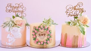 In this tutorial, I demonstrate how to create three mini engagement / wedding / anniversary themed cakes decorated with buttercream and fresh flowers. Enjoy!