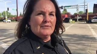 Rochester police investigate the scene where a man was struck by a train and killed Friday morning May 8, 2018. The man was riding a mobility scooter and ...