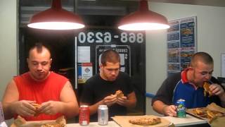 pizza eating contest 1 small cheese and a 12oz coke in under a minute and 10 seconds.