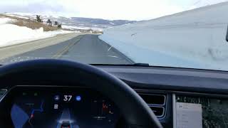 This is on US 89 on my way to Kalispell from Fort MacLeod Supercharger. Showing how well AP2 handles a large snow bank close to the road.
