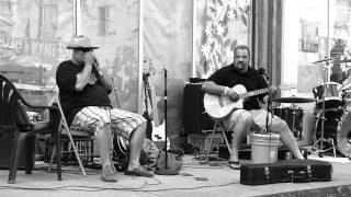 Tim Hoggard (Harmonica) and Jess Hoggard (guitar) two members of The Arkansas Brothers Band perform on the Street in Helena Arkansas at the 2012 King ...