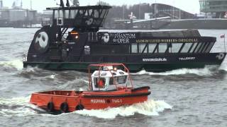 One of the small tugs operating in the port of Hamburg. Footage from January 2015.