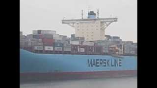 ESTELLE MAERSK one of the biggist Containerships in the world verläßt Hamburg, Baujahr 2006 158 200 TDW, 15500 Teu, 397m lang 56,4 m breit, Höhe 76 ...