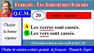 Exercices de Français faciles sous forme de QCM en 20 questions d\'orthographe sur les homonymes lexicaux usuels qu\'il faut maîtriser au plus tôt dès ce1 ...